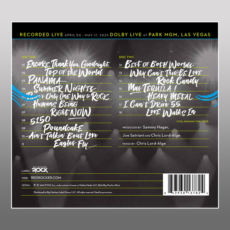 | ron (12178) | ROCK LEGEND, SAMMY HAGAR ANNOUNCES NEW LIVE ALBUM ‘THE RESIDENCY’, OUT OCTOBER 10th Rock & Roll Hall of Famer Sammy Hagar announces Sammy Hagar & The Best of All Worlds Band: The Residency, a hit-filled live album captured during his acclaimed 2025 Las Vegas residency at Dolby Live at Park MGM, set for release on October 10, 2025. Featuring Hagar and The Best of All Worlds Band–Michael Anthony (bass, vocals), Joe Satriani (guitar), Kenny Aronoff (drums), and Rai Thistlethwayte (keyboards, vocals, guitar) the live album captures 18 high-octane live tracks celebrating Hagar’s legendary catalog, including the deepest dive into his tenure with Van Halen in more than 20 years. The first advance track, “Summer Nights (Live),” is out now on all DSPs, and album pre-orders are live today via Big Machine Rock. Stream/Save/Pre-order “Summer Nights (Live)”HERE and save/pre-order the album HERE. Sammy Hagar remarked, “‘Summer Nights’ was one of the first songs we wrote for the 5150 record, on our very first day in the studio. Eddie played me that guitar riff and I just started singing ‘summer nights and my radio,’ and the rest of the lyrics just came out like a river of consciousness. I don’t think there’s a better theme song for a beautiful summer night, so it had to be the first track this summer from the live album. The Best of All Worlds Tour, the single “Encore, Thank You, Goodnight,” and Hagar’s Vegas residency have received universal raves from fans who waited 20 years to hear many of the songs live again, and critics alike, including: ● “(It) was not just a performance but a ‘celebration’ of Van Halen’s enduring legacy… And the fans couldn’t agree more.” — USA Today ● “I get emotional just listening to it.” — Howard Stern, The Howard Stern Show ● “This is a seemingly impossible collaboration of Hagar, Satriani, Anthony, Aronoff and — from beyond — Eddie Van Halen.” — Las Vegas Review-Journal ● “Delighting fans with iconic songs like ‘Why Can’t This Be Love,’ Hagar cemented himself as an important figure in rock history.” — Parade ● “Sammy Hagar has gone from rock star and ‘Van Hagar’ to the everyman of rock. Who else but Hagar would be welcomed at the country festival Stagecoach and Black Sabbath’s farewell show to pay tribute to Ozzy Osbourne?” — Forbes Track listing: Sammy Hagar & The Best of All Worlds Band: The Residency 1. Encore, Thank You, Goodnight. (Live) For more than four decades, Grammy® Award winner and Rock & Roll Hall of Famer Sammy Hagar has been one of rock music’s most dynamic and prolific artists. From his breakthrough with Montrose to a multiplatinum solo career and his years fronting Van Halen, Chickenfoot, The Circle, and now The Best of All Worlds Band, Hagar has sold over 50 million albums worldwide and delivered anthems like “I Can’t Drive 55,” “Right Now,” and “Why Can’t This Be Love.” In 2024–25, his Best of All Worlds tour became one of the year’s top-grossing rock runs, leading into a hit Las Vegas residency at Dolby Live at Park MGM and the upcoming live album, Sammy Hagar & The Best of All Worlds Band: The Residency (October 10, 2025 via Big Machine Rock). Beyond music, Hagar is a pioneer in the spirits and lifestyle space, founding Cabo Wabo Tequila and leading award-winning brands including Sammy’s Beach Bar Rum, Santo Spirits with Guy Fieri, and Red Rocker Brewing Co. His restaurant ventures include Sammy’s Beach Bar & Grill locations at airports in Honolulu, HI; Maui, HI; Las Vegas, NV; Cleveland, OH; and Charlotte, NC, as well as Cabo Wabo Cantinas in Cabo San Lucas and Las Vegas, and the Cabo Wabo Beach Club in Huntington Beach. A #1 New York Times bestselling author, TV and radio host, and philanthropist, Hagar has also earned numerous honors, including a Grammy Award (1992), induction into the Rock & Roll Hall of Fame (2007), recognition as the first Honorary Ambassador to Los Cabos (2022), and a star on the Hollywood Walk of Fame (2024). Visit RedRocker.com for more information ronQuote |