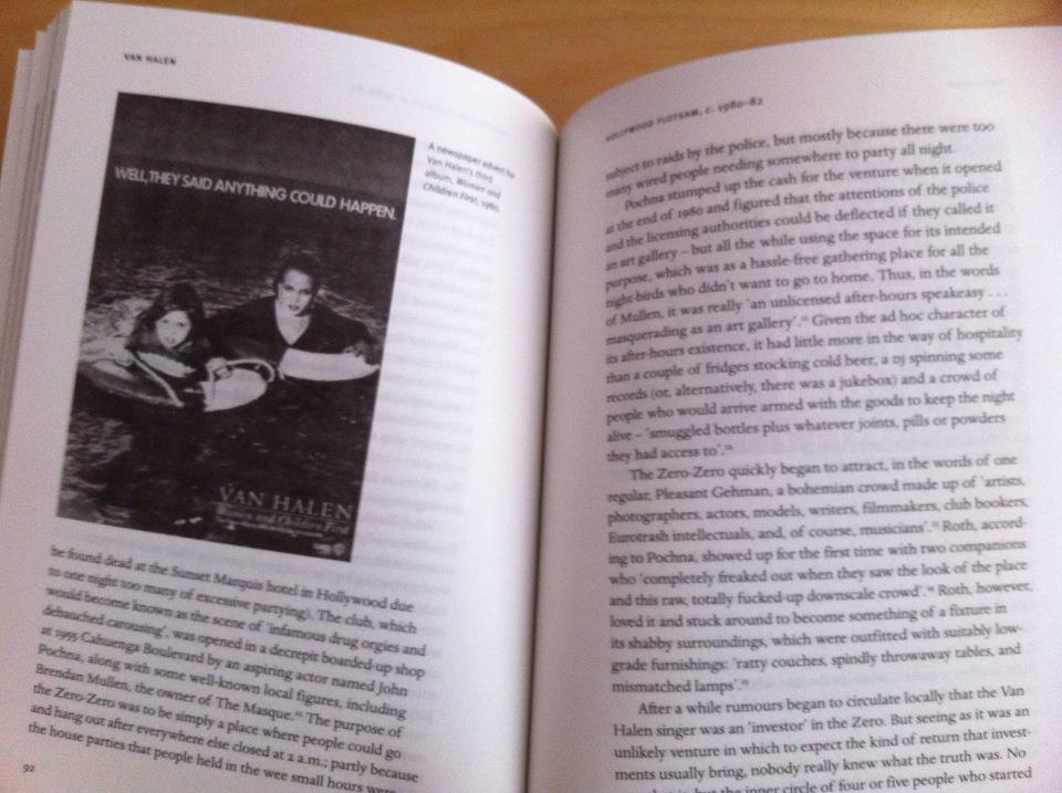 | ron (12174) | Started reading this book today. At least so far, it’s kind of like a history lesson about the SoCal music scene with plenty of VH stories thrown in to tie it all together. It’s not strictly about VH. I think the one Amazon review sums it up pretty well (even if I haven’t read it all the way through yet). It’s also available for the Kindle now too. ronQuote |